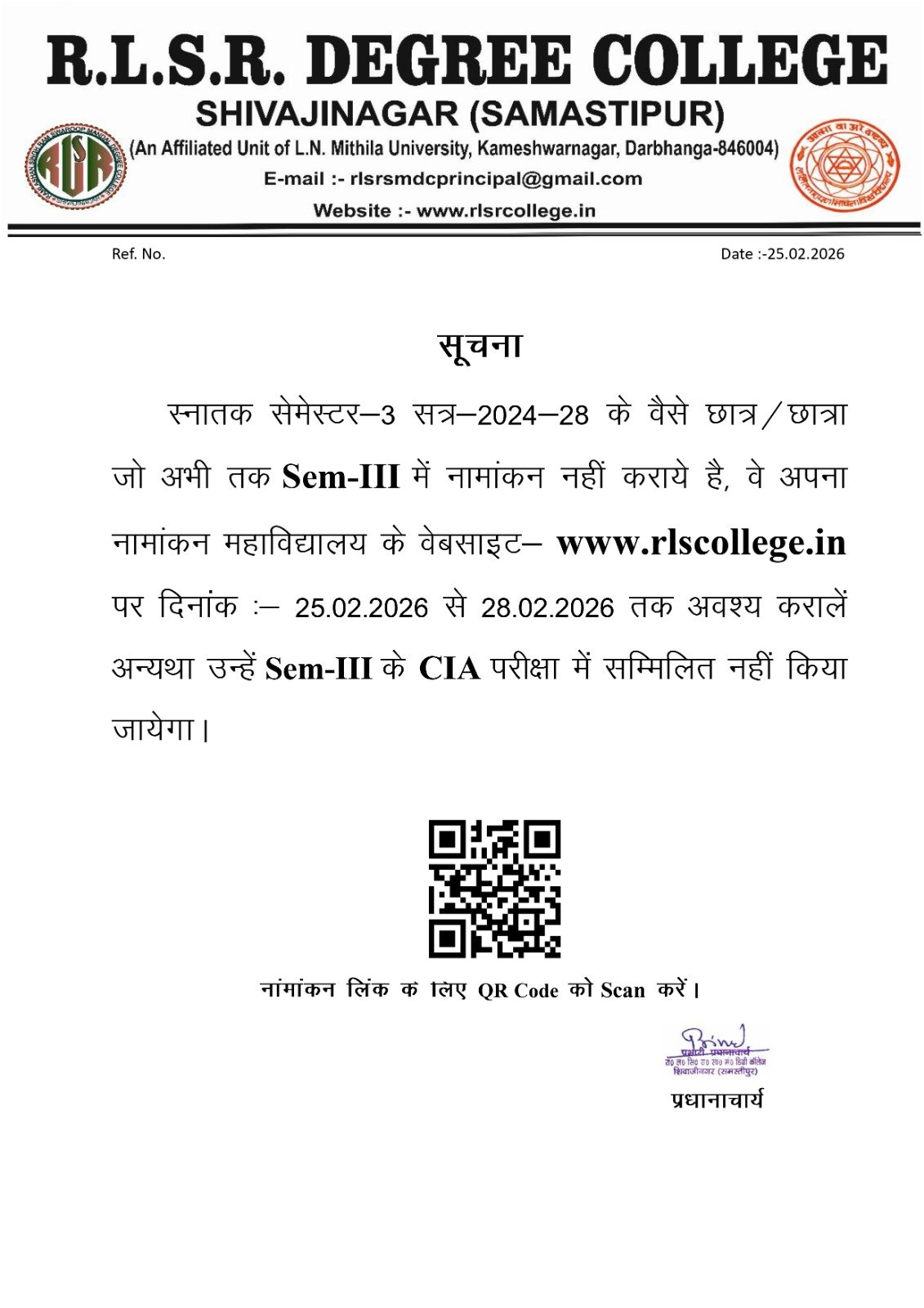 RLSR College, Samastipur is a prestigious constituent college known for its commitment to academic excellence, discipline, and holistic development of students. Established with the vision of providing quality higher education to rural and urban students alike, the college has consistently maintained high educational standards. The institution is affiliated with Lalit Narayan Mithila University and offers undergraduate and postgraduate programs in Arts, Science, and Commerce streams. The college campus provides a vibrant academic atmosphere supported by experienced faculty members who are dedicated to mentoring and guiding students toward success. Modern classrooms, a well-equipped library, computer laboratories, and various student support facilities contribute to an effective learning environment. Beyond academics, RLSR College actively promotes extracurricular activities including cultural programs, seminars, workshops, and sports events to ensure all-round personality development. The institution encourages research, innovation, and community engagement initiatives that help students grow socially and intellectually. With a focus on moral values, leadership skills, and career readiness, RLSR College continues to nurture responsible citizens and future leaders. The college remains committed to its mission of delivering accessible, inclusive, and transformative education to the youth of the region.